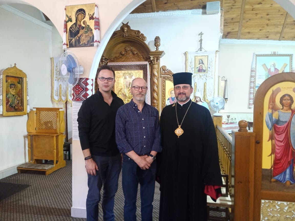 Гості з Великої Британії також відвідали катедральний храм святого апостола Андрія Первозванного. Екзарх ознайомив їх з історією парафії, розповів про план реконструкції катедри, а також презентував соціальні та благодійні ініціативи, які реалізує екзархат.